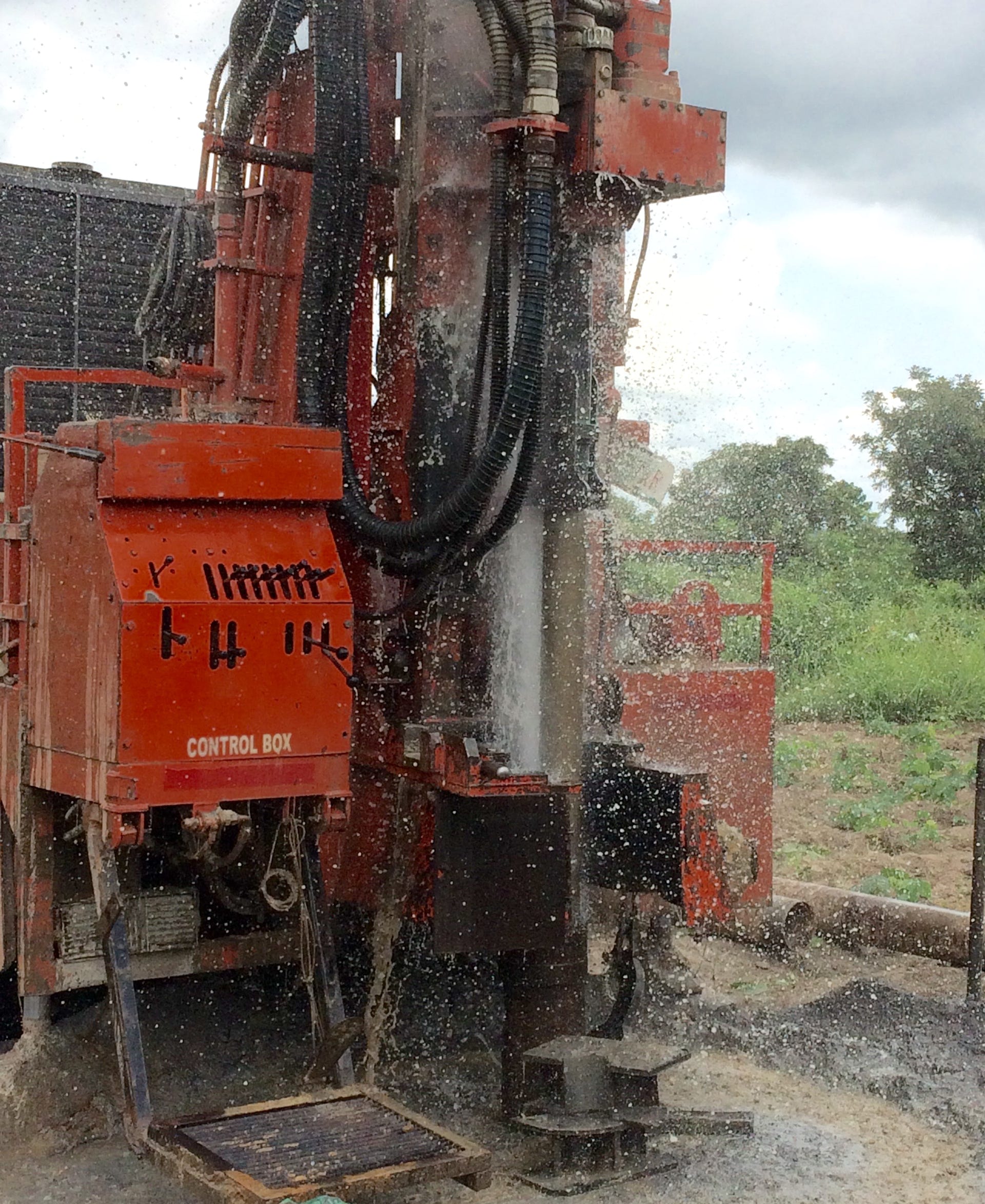 Anlage des Tiefbrunnens. Wir haben 70 m tief gebohrt. Nach 3 Stunden Bohrung schoss das Wasser in den Himmel. Jetzt werden wir wohl genug davon haben, um nach Bedarf Gemüse anzubauen.