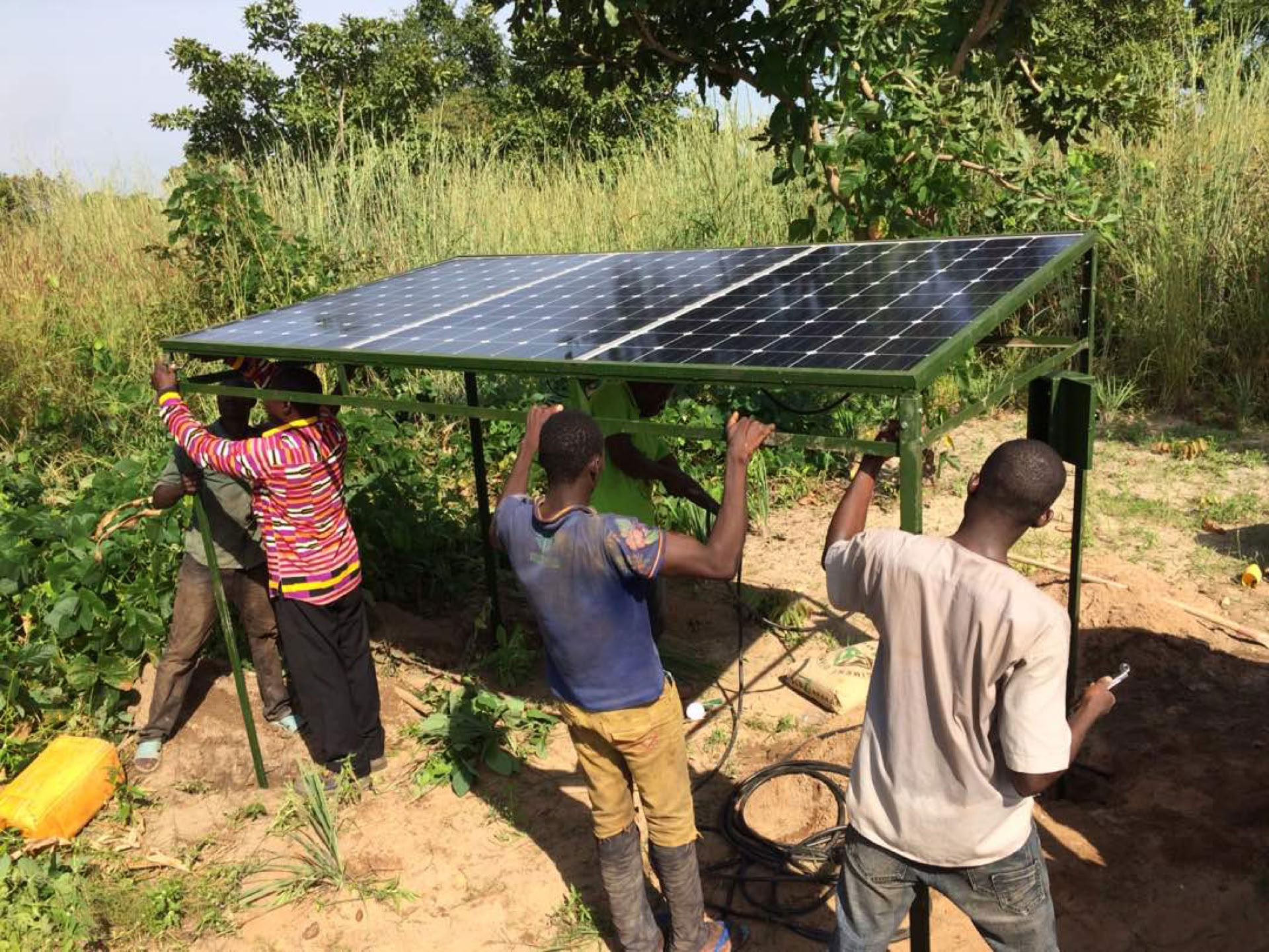 Installation der Solarmodule zum Betrieb der Pumpe des Tiefbrunnens.