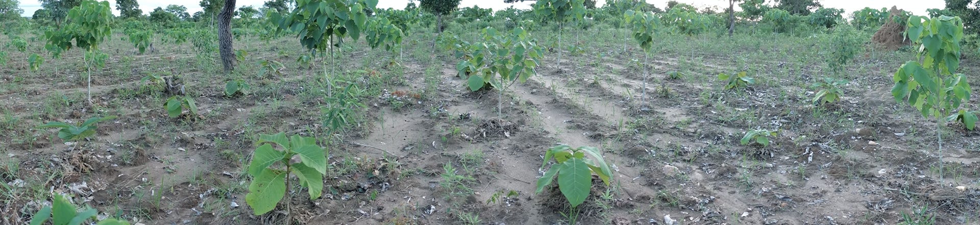 Pflanzung von Gmelina arborea von 2014, Zustand 2017. Nutzholz.