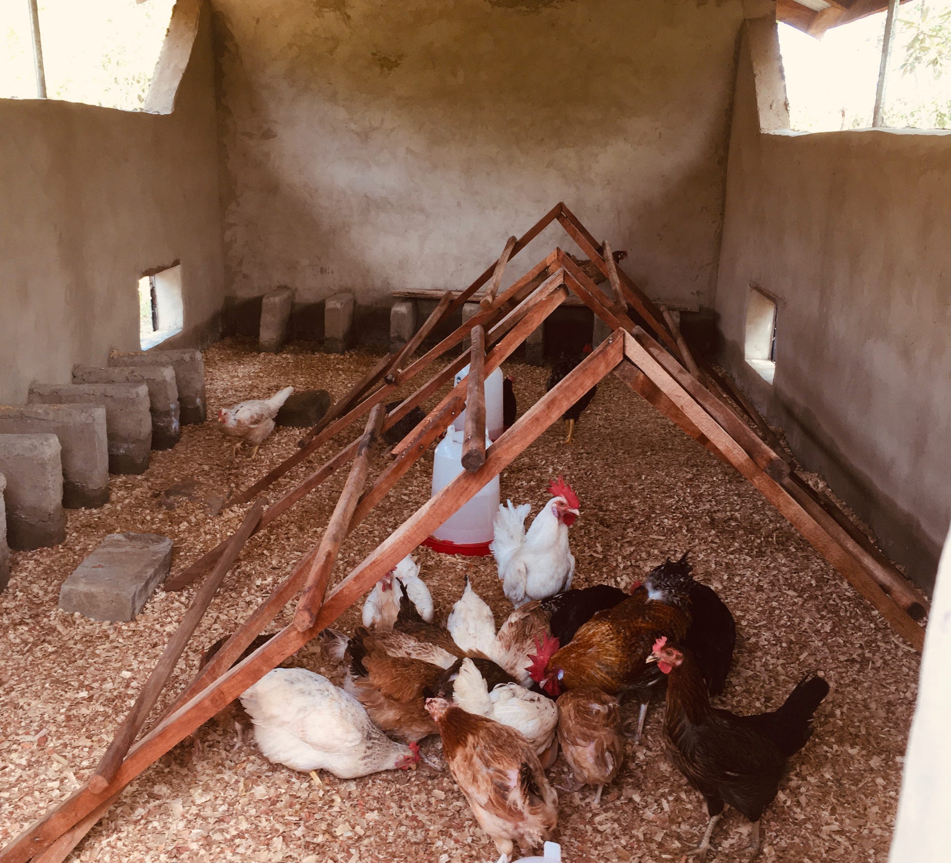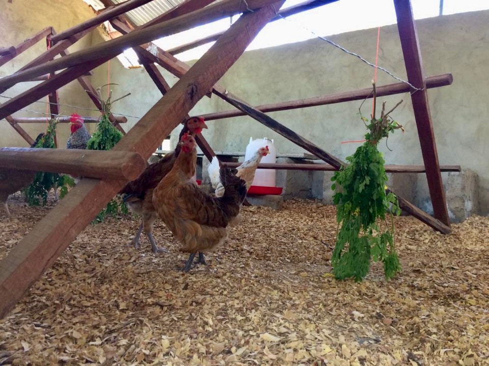 25. Oktober 2021. Einzug der Hühner. Legehennen. Wir waren in Togo und haben im befreundeten Centre CIDAP 20 Hühner und 3 Hähne einer Kreuzung aus heimischen Hühnern mit der Rasse Sosso geholt. Ein Zweinutzungshuhn, das robuster ist als Hochleistungsrassen.