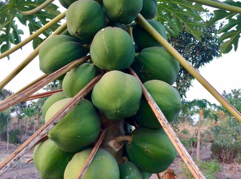 Oktober 2024. Im Jahr 2013 pflanzte ich hinter meinem Haus eine Papaya. Sie hat nicht lange überlebt. Danach folgten zahlreiche Versuche. Entweder wurden die Pflanzen von Termiten gefressen oder es fehlte an Dünger und Wasser. Wir hatten dann die falschen Sorten oder nur männliche Pflanzen, die nicht trugen. Wer hätte gedacht, dass wir elf Jahre brauchen würden, um erfolgreich zu sein? Djibril hat durchgehalten und ich habe nicht aufgegeben. Und mit Hilfe des befreundeten Gärtners Emmanuel haben wir es nun geschafft. Betrachten wir es als einen Anfang!